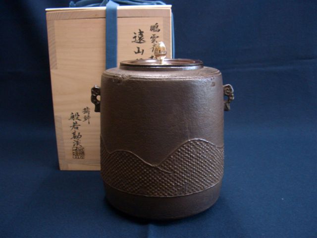 般若勘渓,作 鵬雲斎大宗匠好写 遠山筒釜銀摘付 『お値段はお電話にて承ります。』 この他、般若勘渓作品取り扱っております お気軽にお問い合わせください。 |