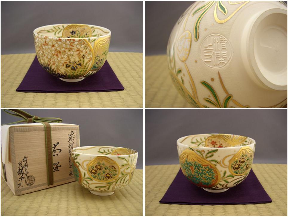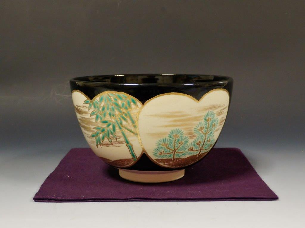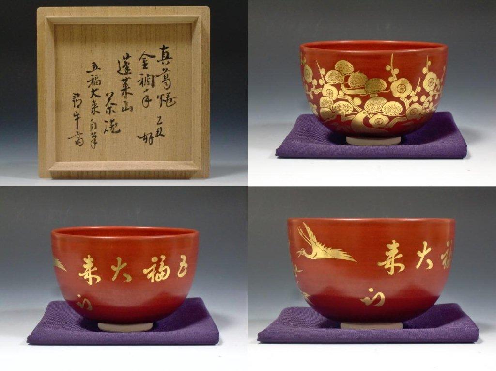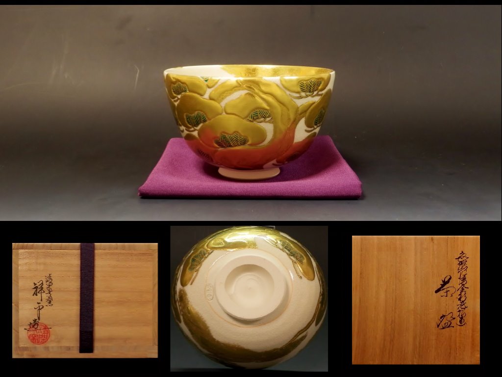 | (清閑寺窯)杉田祥平 色絵金地老松画茶碗 未使用美品 これからの時季(炉披、初釜など)に。 ▽ 詳細は下の画像をクリックしてください ▽
