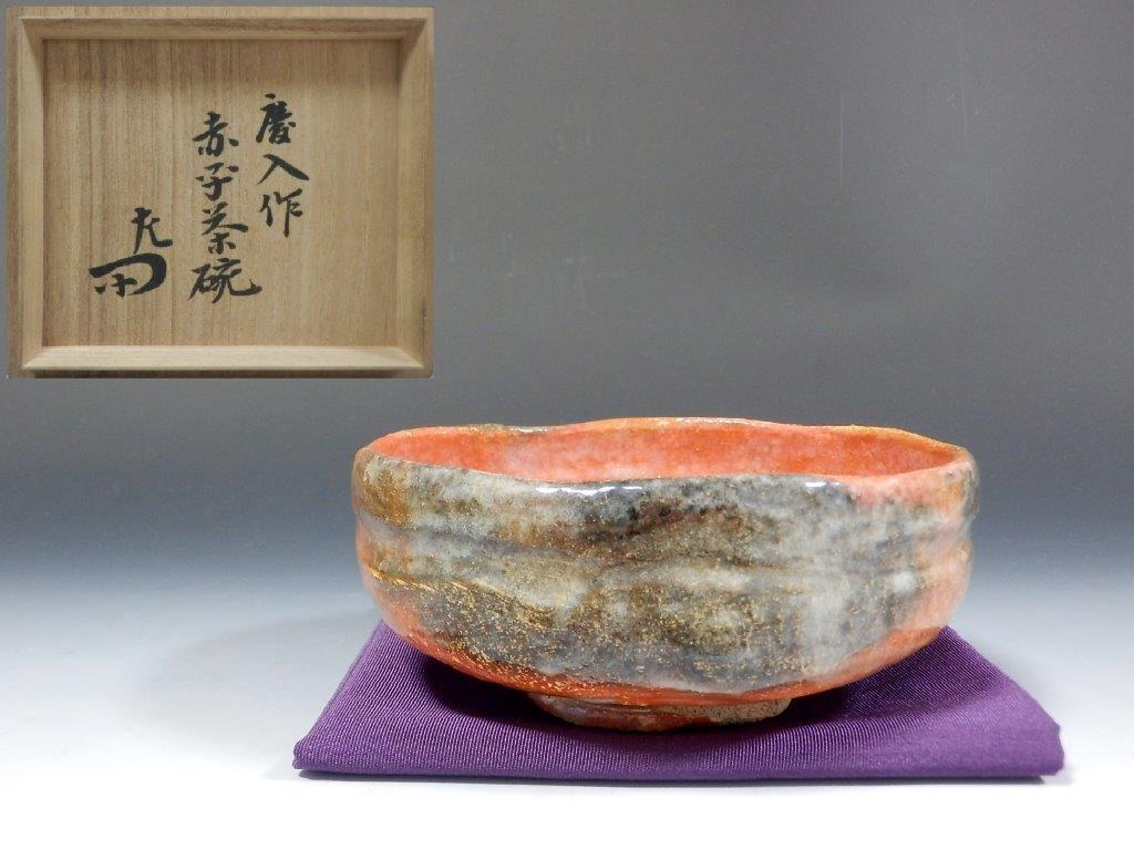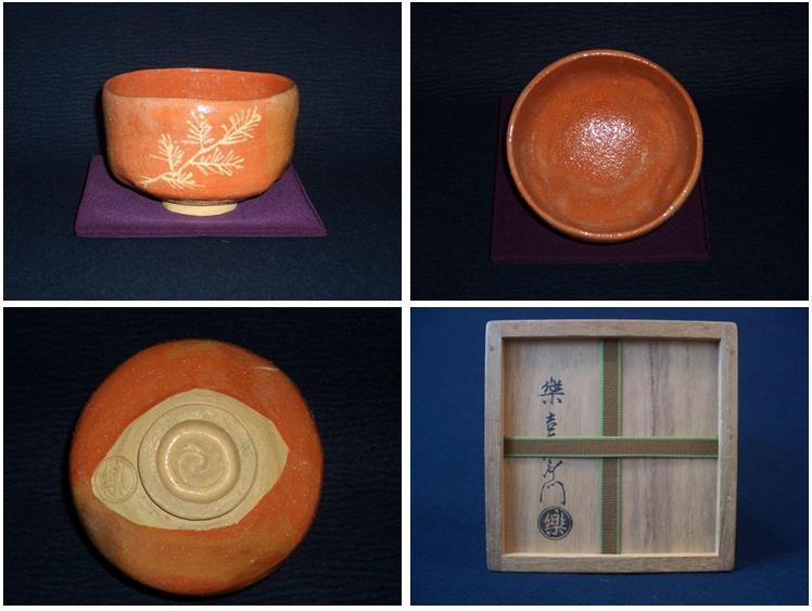 | 14代 楽吉左衛門(覚入) 砂釉松画赤茶碗 ▽ 詳細は下の画像をクリックしてください ▽