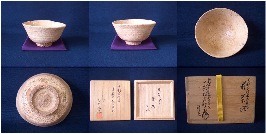 | 14代,坂倉新兵衛 毛利家伝来古萩写茶碗(即中斎御家元書付) ※箱蓋表 毛利家伝来古萩茶碗之写也 七十代 毛利元道 朱印 ※箱蓋裏 古萩写 茶碗 花押(即中斎) ※共箱 毛利家伝来古萩写萩茶碗 萩焼宗家襲名記念 十四代 坂倉新兵衛 謹造之 ▽ 詳細は下の画像をクリックしてください ▽