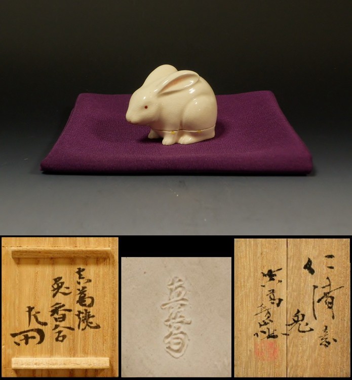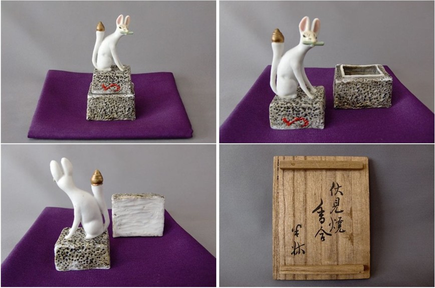 | 伏見焼 狐(おいなりさん)香合 久田無敵斎箱書付 ▽ 詳細は下の画像をクリックしてください ▽