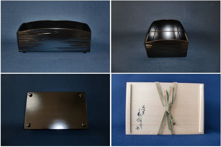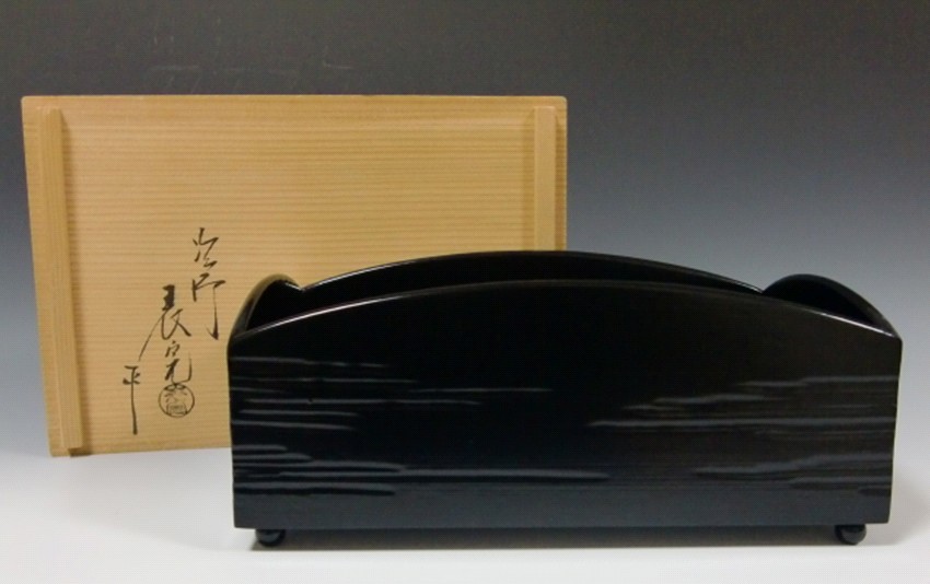 | 川瀬表完 黒一閑張櫛形莨盆(粒足) ▽ 詳細は下の画像をクリックしてください ▽
