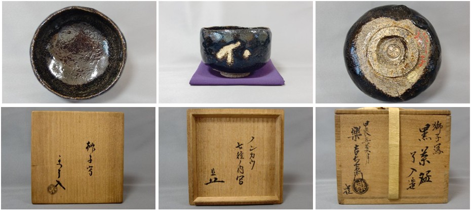 | 楽了入、道入(ノンカウ)七種,獅子写黒茶碗 碌々斎(表千家11代家元)御書付 楽覚入(楽家14代)極 ▽ 詳細は下の画像をクリックしてください ▽