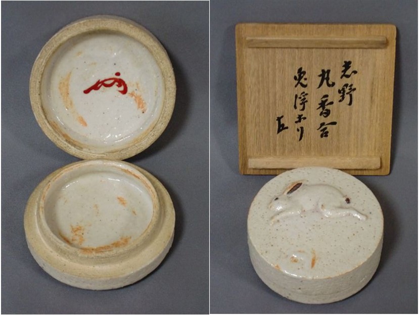 | 志野 丸香合兎浮彫 即中斎宗匠御書付(在判有) ▽ 詳細は下の画像をクリックしてください ▽