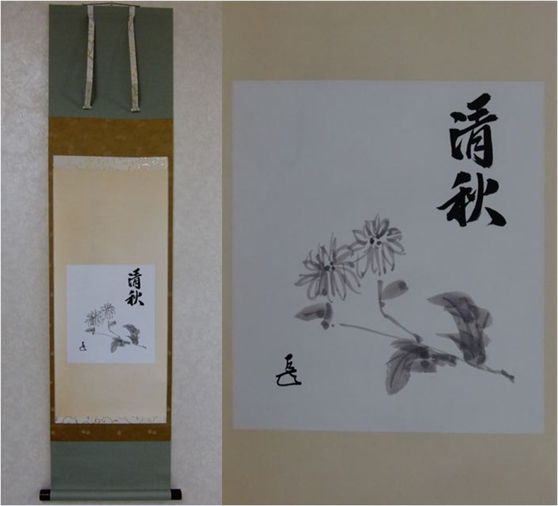 | 而妙斎御家元 菊画清秋賛色紙軸装 お家元による自画賛の色紙を軸装したものです。 ▽ 詳細は下の画像をクリックしてください ▽