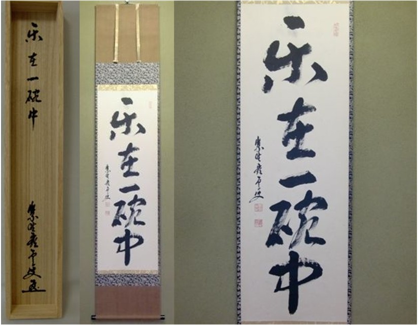 | 大徳寺十五代管長 明浦宗哲(俗姓高田)老師 一行「楽在一碗中」 現管長の、一行・横物など、お好きな語句で承ります。 ▽ 詳細は下の画像をクリックしてください ▽