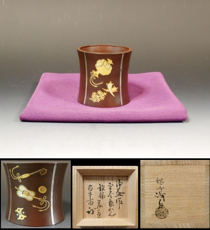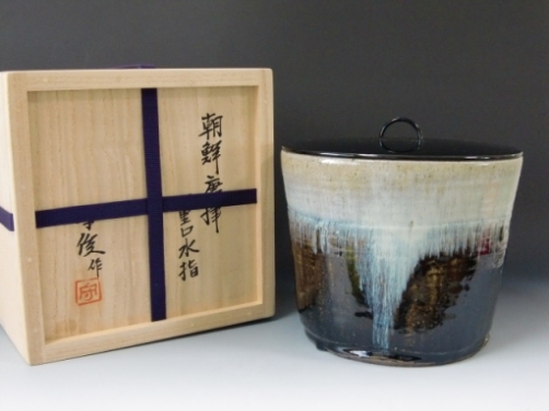 | 政所窯(永興明道)青金箔押手桶水指(塗蓋,鈴木表朔) ▽ 詳細は下の画像をクリックしてください ▽