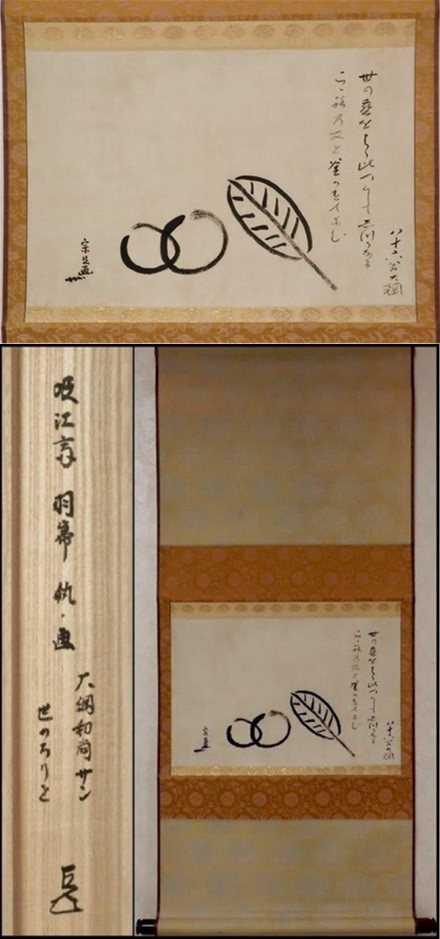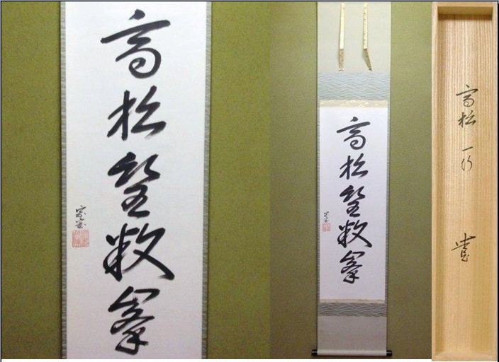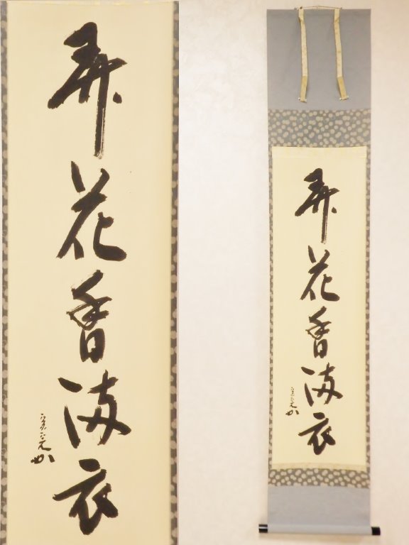 而妙斎御家元 御筆一行「彩鳳舞丹宵」御好表具、奥村吉兵衛。 一閑軸先、飛来一閑。 『お値段はお電話にて承ります。』 |