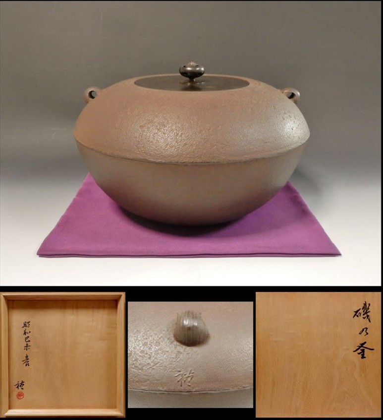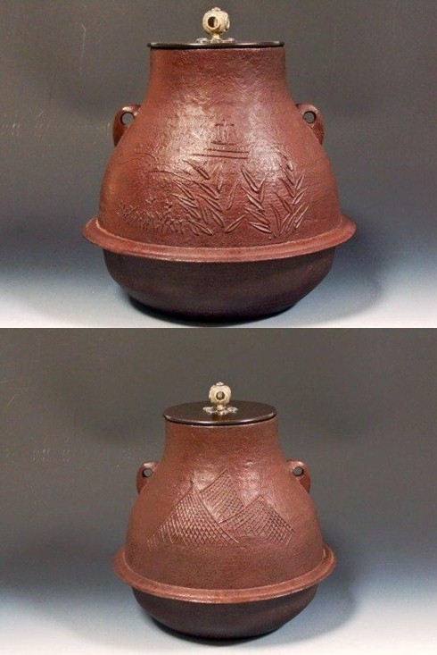 | 尾張藩御釜師 12代,加藤了三(忠三朗) 芦屋写浜松地紋真形釜(炉用) 個展冊子の表紙に掲載されている釜です。 定価(330,000円) ▽ 詳細は下の画像をクリックしてください ▽