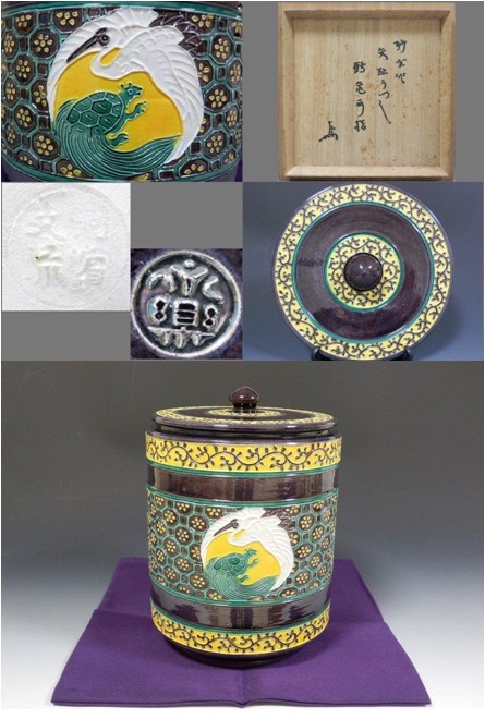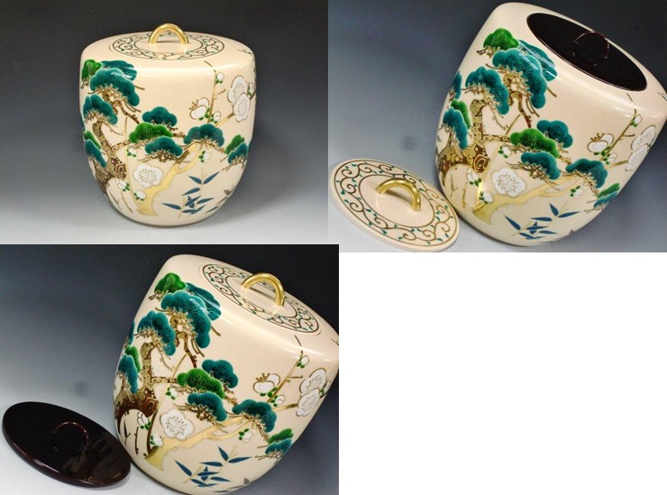 | 手塚石雲(花蝶窯)仁清写松竹梅の絵水指 (作者共箱) ▽ 詳細は下の画像をクリックしてください ▽