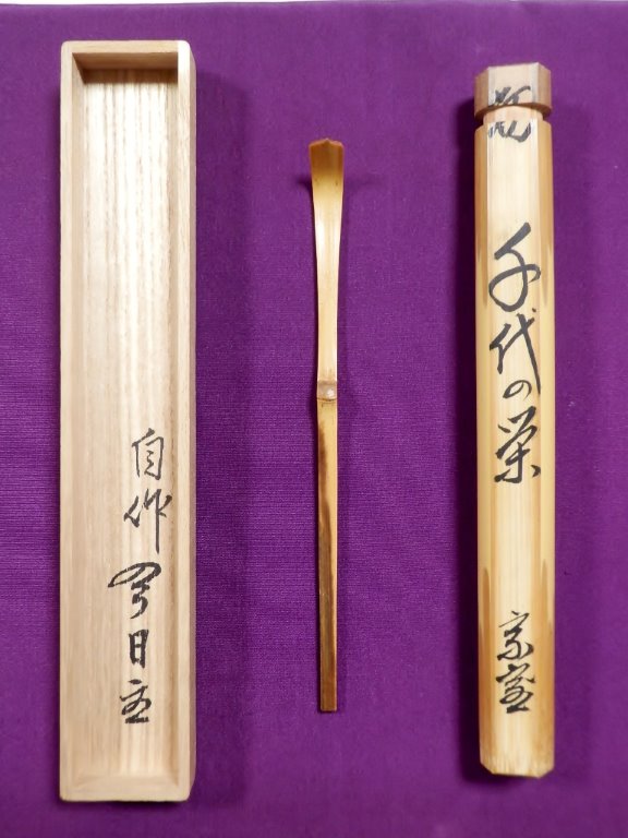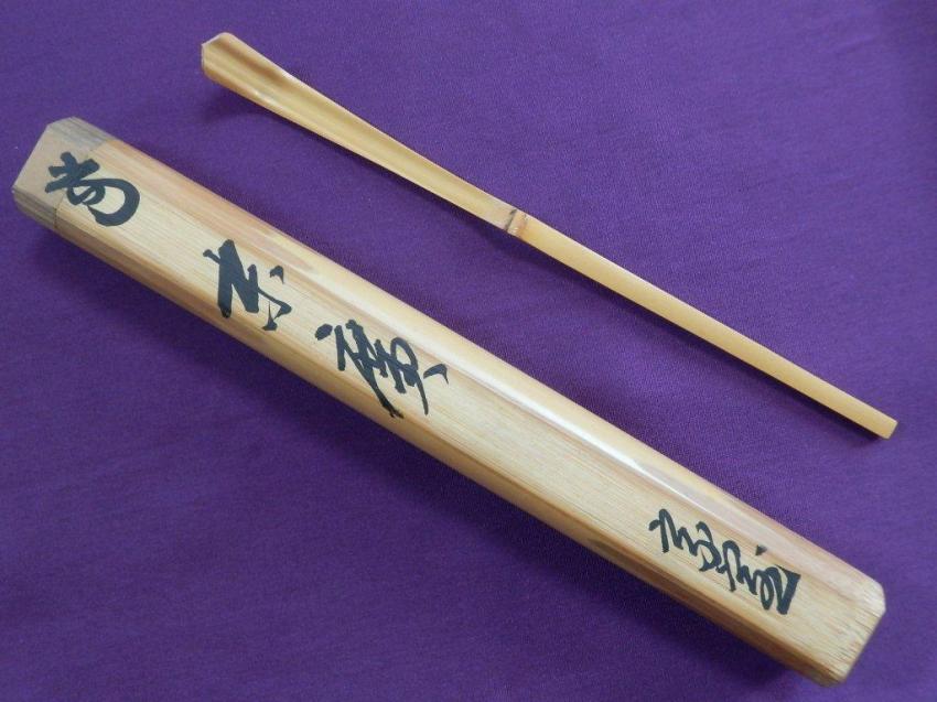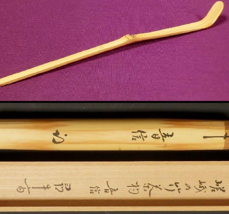 | 嵯峨の竹茶杓 銘「音(おとずれ)信」 久田宗也(尋牛斎)書付 ▽ 詳細は下の画像をクリックしてください ▽