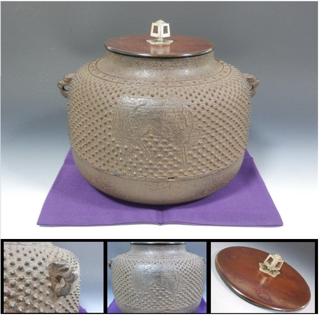 | 角谷与斎 浜松地紋真形釜(銀摘) ▽ 詳細は下の画像をクリックしてください ▽