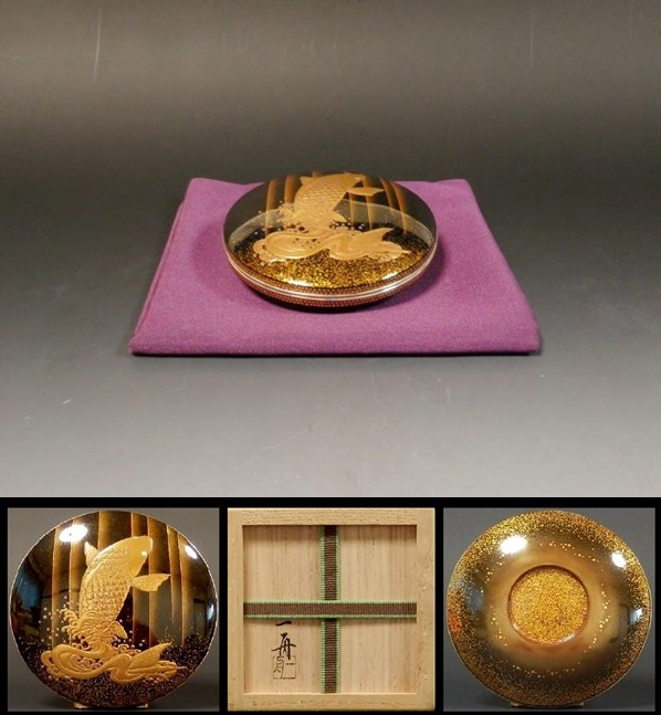 | 田村一舟 瀧昇(登龍門)蒔絵錫縁丸香合 内梨地 ▽ 詳細は下の画像をクリックしてください ▽