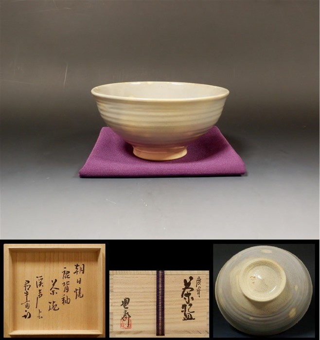 | 松林豊斎 朝日焼鹿背茶碗 作者共箱 遠州七窯の、朝日焼茶碗です。 鹿背模様が非常に良く出ており、個人的に好きなお茶碗です。 ▽ 詳細は下の画像をクリックしてください ▽