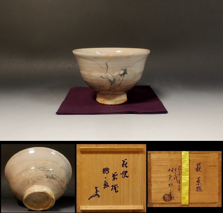 | 十二代坂倉新兵衛 萩焼鶴の画茶碗 即中斎宗匠御書付 ▽ 詳細は下の画像をクリックしてください ▽