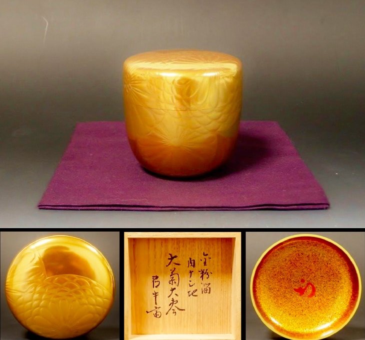 | 呉藤童甫 金粉溜大菊大棗 尋牛斎書付 ▽ 詳細は下の画像をクリックしてください ▽
