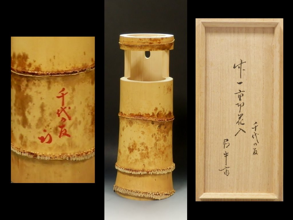 | 長尾宗湖 竹一重切花入(久田宗也 尋牛斎)書付 銘「千代の友」 ▽ 詳細は下の画像をクリックしてください ▽