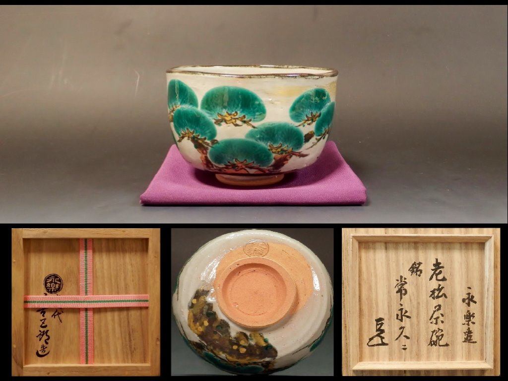 | 永楽善五郎(十七代)乾山写老松茶碗 而妙斎宗匠御書付 銘「常永久ニ」 ▽ 詳細は下の画像をクリックしてください ▽