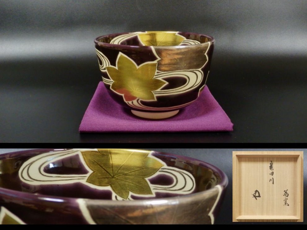 | 岡田華渓(茜窯)紫釉竜田川茶碗 鵬雲斎御書付 ▽ 詳細は下の画像をクリックしてください ▽